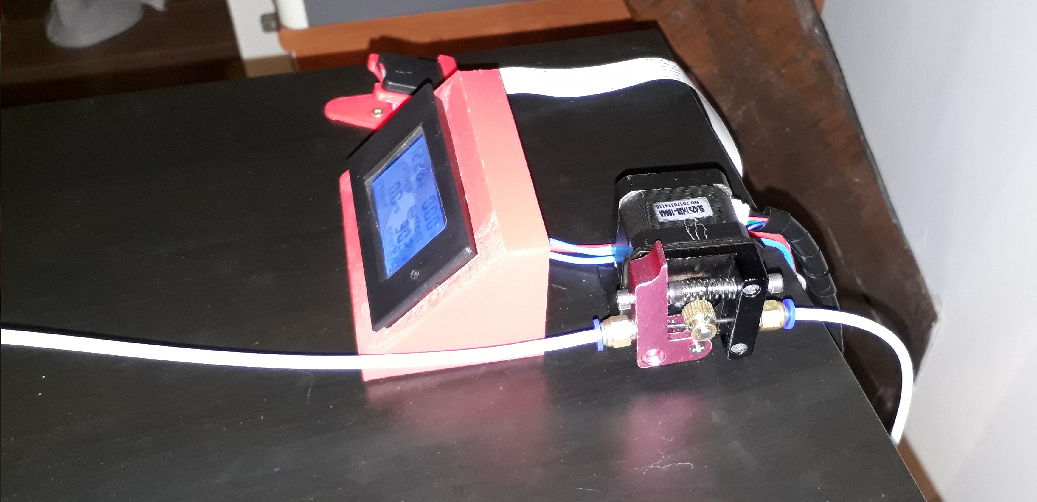 La machine étant à l’intérieur du caisson l’écran n’était pas très visible il me fallait sans cesse me baisser pour utiliser les boutons et consulter l’écran. J’ai trouvé ce plan pour déporter l’écran de l’imprimante il fait tout a fait le boulot et est facilement assemblable avec en prime 2 encoches qui vous permettrons de le fixer à la table. Le plan est ici .